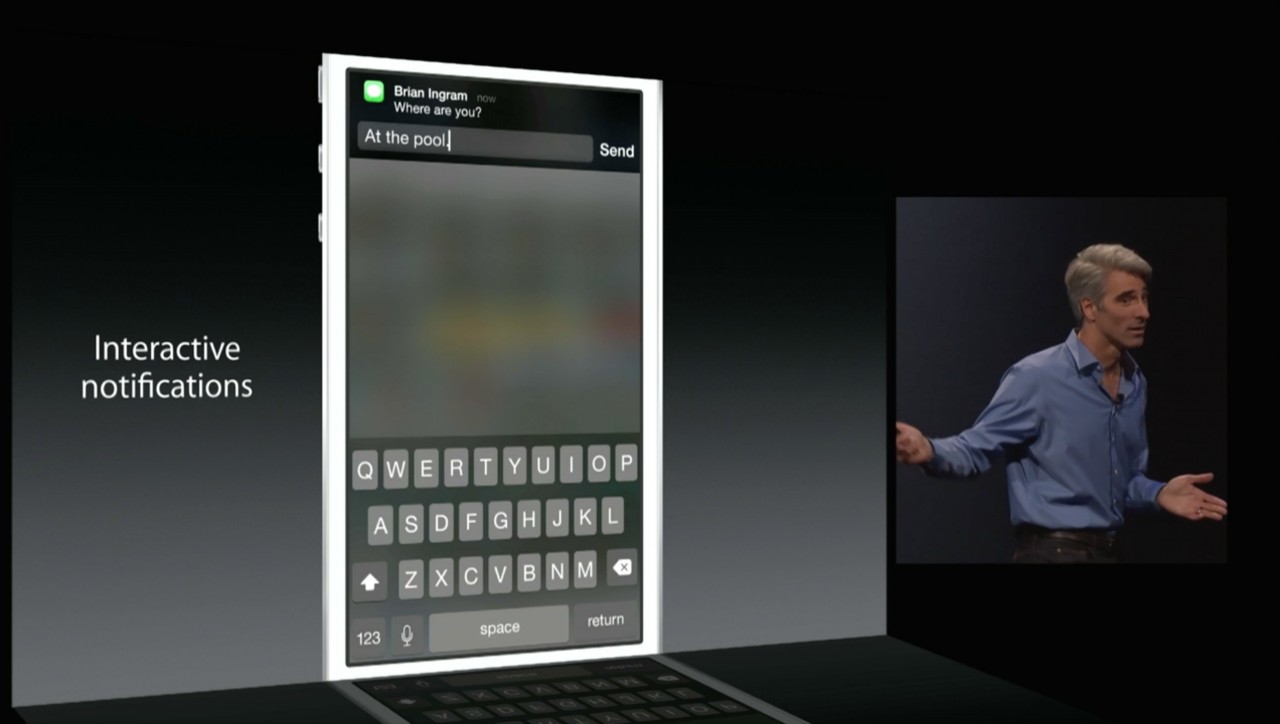 In iOS 8, Notifications get an overall, adding interactive actions that lets users reply to messages straight away, even from the lockscreen.