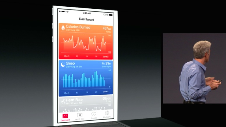 Apple also also introduced HealthKit. It will act as a central hub for health data, collected with the help of third-party apps, and all with strong privacy protections. Healthcare providers will be able to call upon all this stored data when later performing diagnoses.