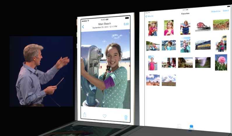 Family Sharing is a new system to facilitate the distribution of media between users sharing an account. It also allows for parental oversight, like giving parents the ability to remotely confirm app store purchases initiated by kids. This got the attraction of many people in the audience and we know why. How cool will this be?